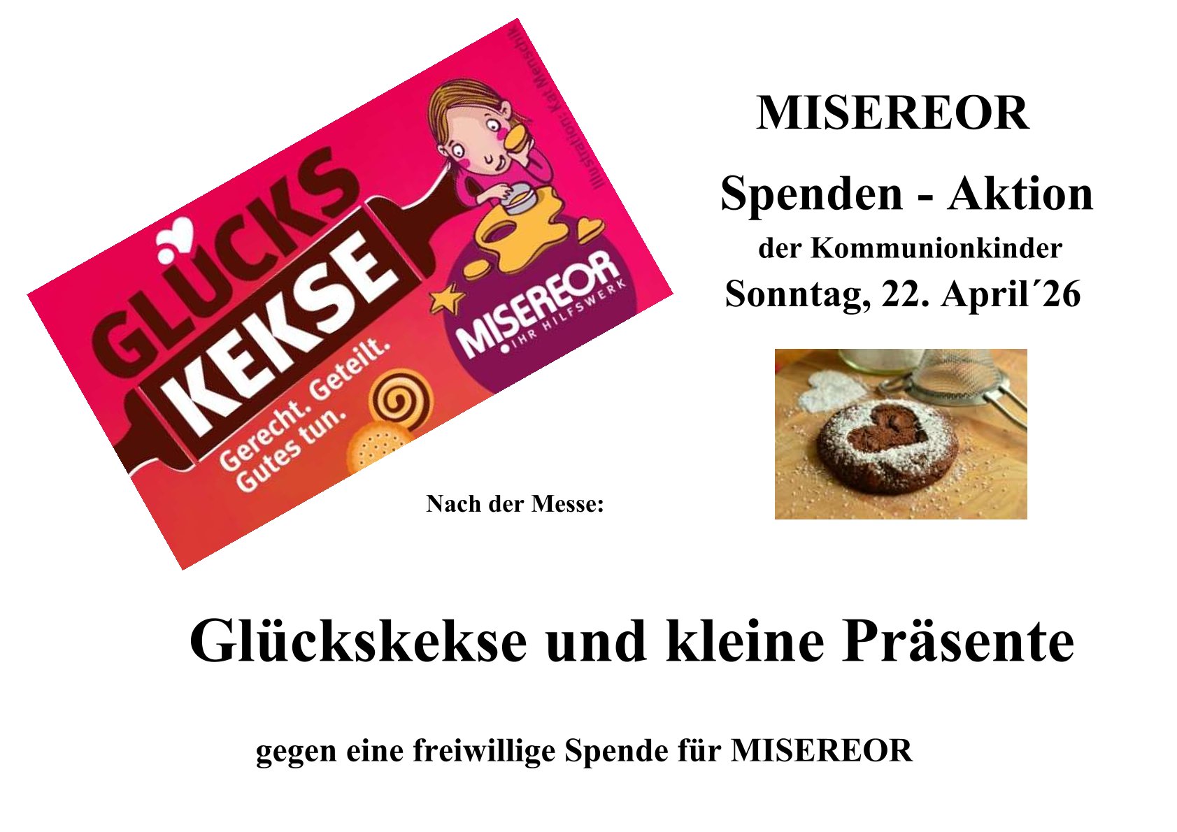Nach der Messe werden die Kommunionkinder Kekse verteilen und um eine Spende für die Misereor-Aktion bitten.